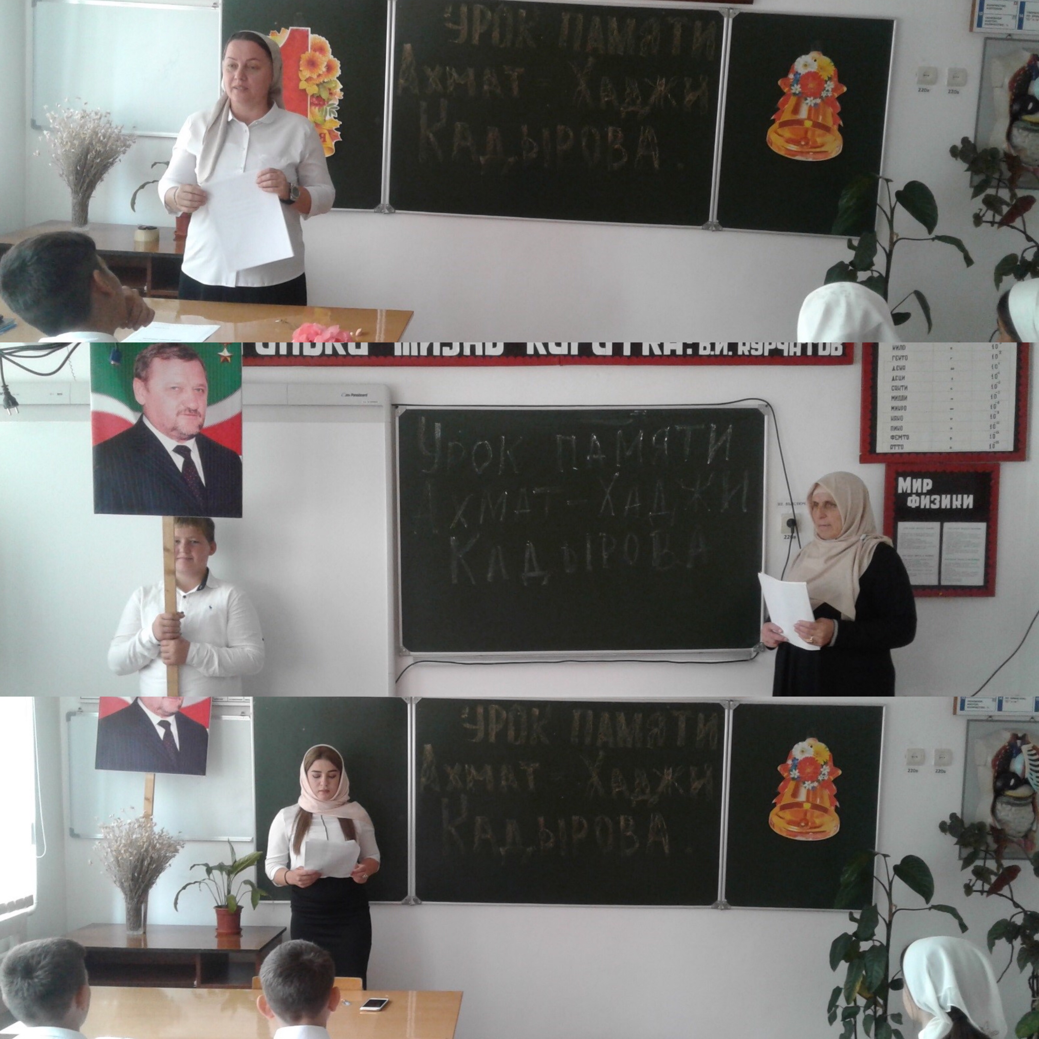 02.09.2019После окончания общешкольного мероприятия, посвященного Дню знаний, дети оправились на свои первые уроки. Уроки были посвящены памяти первого президента ЧР, Героя России А-Х. Кадырова и вкладу чеченского народа в Победу в Великой Отечественной войне.