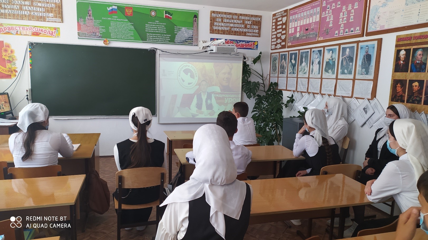 На этот онлайн – урок были приглашены учащиеся, которым исполнилось 14 лет, т.е. учащиеся с 8- 11 классы. Дети были рассажены в двух классах, где заранее была подготовлена доска для прямой трансляции онлайн-урока.
