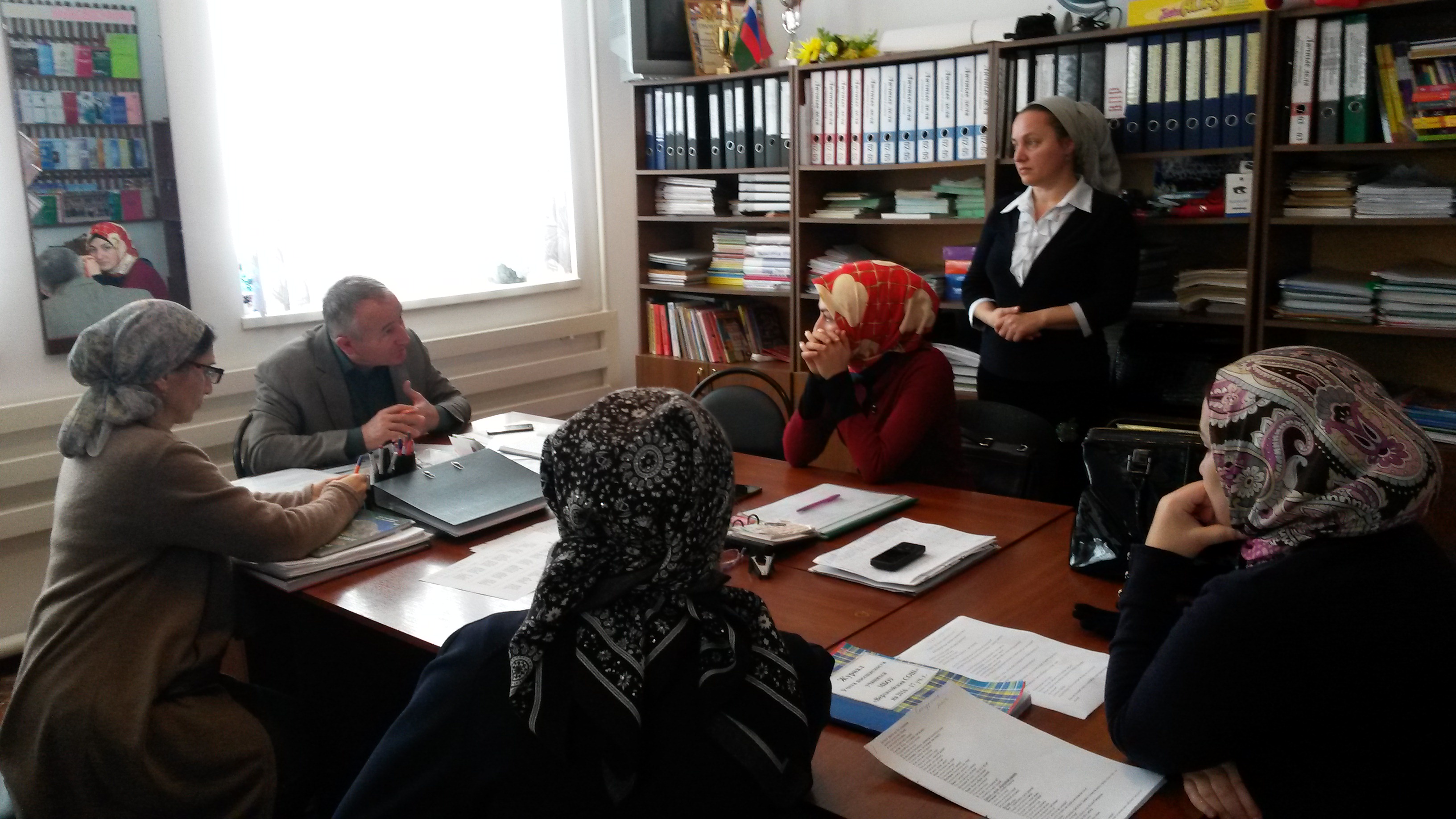 После проверки документации координаторов, собрав педколлектив, дал ценные советы и указания к методике подхода к изучению новых тем