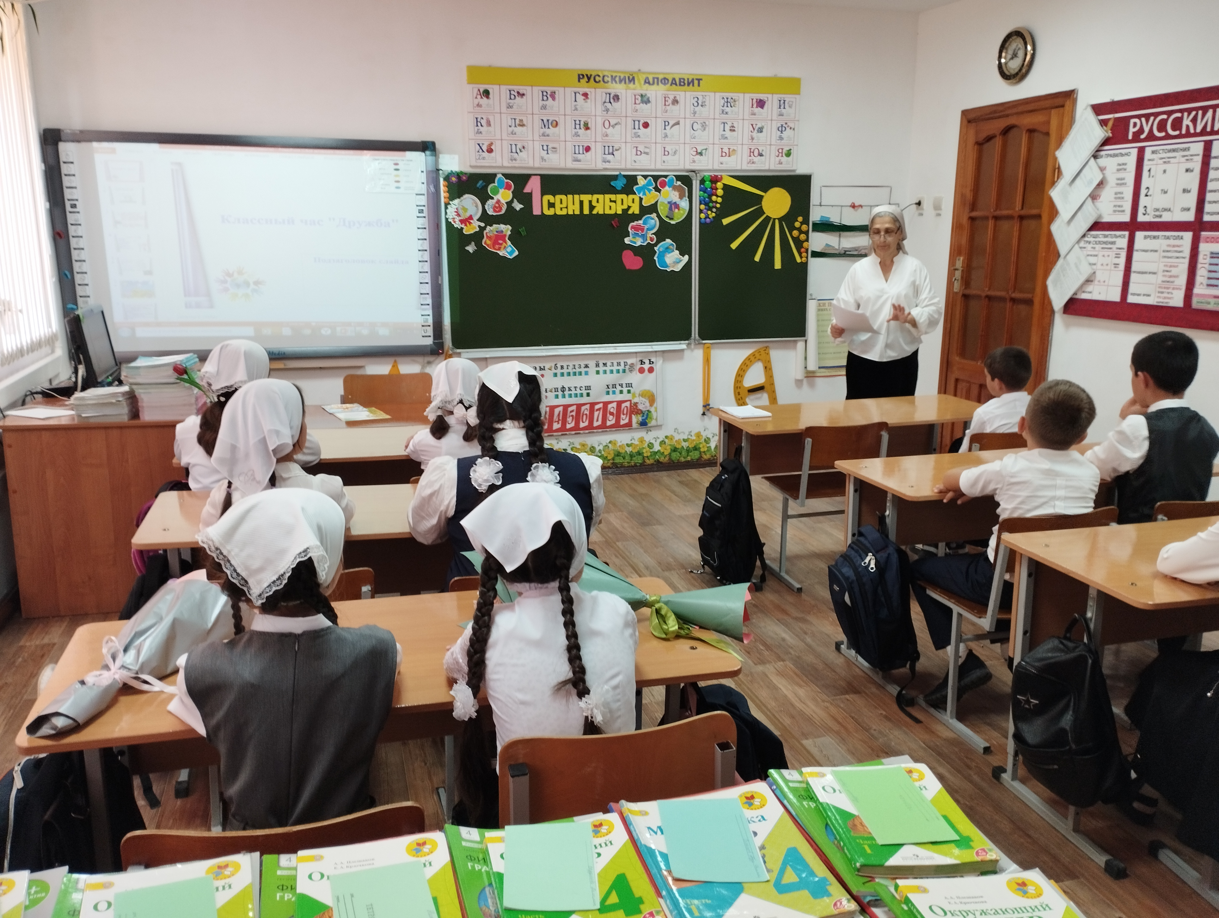 01.09.20221 сентября в МБОУ «Верхатойская СОШ» была проведена торжественная линейка для учащихся с 1-11классы. Торжественная линейка была открыта с поднятием государственных флагов России и Чеченской Республики, и исполнением государственных гимнов Российской Федерации и Чеченской Республики. После этого слово предоставили директору школы Абазатовой Малике Шараниевне. Она поздравила всех присутствующих с праздником и пожелала успехов в овладении знаниями.Все ребята, отдохнувшие и загорелые, снова собрались в школе. Они радовались встрече с одноклассниками, классными руководителями и учителями.По окончанию линейки во всех классах прошли классные часы, которые были посвящены подвигам Героев России на Донбассе, формированию положительной нравственной оценке здорового образа жизни, позитивного отношения к занятиям спортом, способствованию патриотического воспитания, гордости за свою страну.Темы классных часов:1 класс – «Здравствуй, школа!»2 класс – «Дружба»3 класс – «Что такое толерантность?»4 класс – «Дружба»5 класс – «Здоровый образ жизни»6 класс – «России Родина – Россия»7 класс – «Важность семейных ценностей и традиций»8 класс – «Важность добрых поступков»9 класс – «Я и общество»10 класс – «Кем хочу стать»11 класс – «Герои России – герои Донбасса».