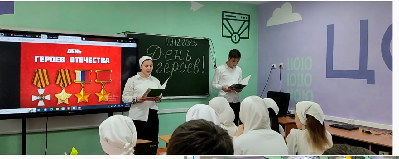 Сегодня учащиеся 9 класса провели классный час, посвященный Дню героев. Ребята подчеркнули важность данного праздника, рассказали о подвигах наших ребят во все времена.