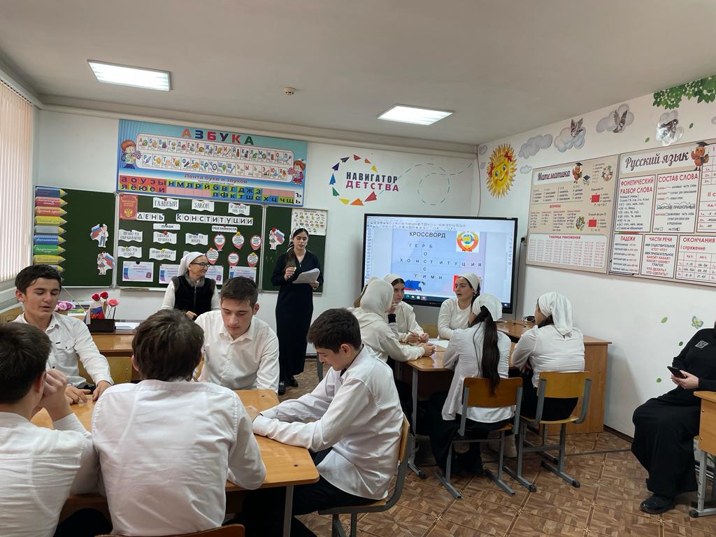 12.12.2023Федеральный проект «Патриотическое воспитание» национального проекта«Образование», стартовавший 1 января 2021 года направлен на обеспечениефункционирования системы патриотического воспитания граждан РоссийскойФедерации.Проект предполагает усиление воспитательной компоненты на уроках, вовнеурочной деятельности и в дополнительном образовании детей: обучающимсяпрививаются базовые ценности на уроках, на занятиях по интересам и на массовыхмероприятиях. Именно патриотическое воспитание и базовые ценности, которыенеобходимы для правильного роста и развития подрастающего поколенияпрививаются на внеурочном занятии «Разговоры о важном».Тема последнего урока совпало с предстоящей юбилейной датой - 30-летиеКонституции Российской Федерации.Кроме проведенных внеурочных занятий по шаблону, рекомендованномуИнститутом стратегии и развития образования, в нашей школе советник директорапо воспитанию и взаимодействию с детскими общественными объединениямиДалаева Мата Сулимановна провела ряд мероприятий, приуроченные кпразднованию Дня Конституции России, которые проходят в рамкахВсероссийского проекта «Навигаторы детства».Организаторы Проекта:— Министерство Просвещения Российской Федерации;— Общероссийское общественно-государственное движение детей и молодежи;Мероприятия были на такую тематику:- в начальных классах кинолекторий «Азбука прав»;- для 9-11 классов викторину «Конституция моей страны»;- для 6-8 классов провела интеллектуальную игру «Что мы знаем о Конституции?».При проведении мероприятий были задействованы и преподаватели, и родителиобучающихся.Советнику по воспитанию помогали активисты первичного отделения «ДвиженияПервых».Мне, как заместителю директора по воспитательной работе и как бывшей старшейпионерской вожатой в годы «Пионерии», хочется сказать огромное спасибоПрезиденту Российской Федерации за поддержку предложения Дианы Красовскойсоздать Движение, объединяющее детей России. Это Движение, действительно,объединяет всех активных и «безучастных» детей в бурный поток акций ипроектов, которых каждый ребенок может выбрать себе на свое усмотрение иинтерес.