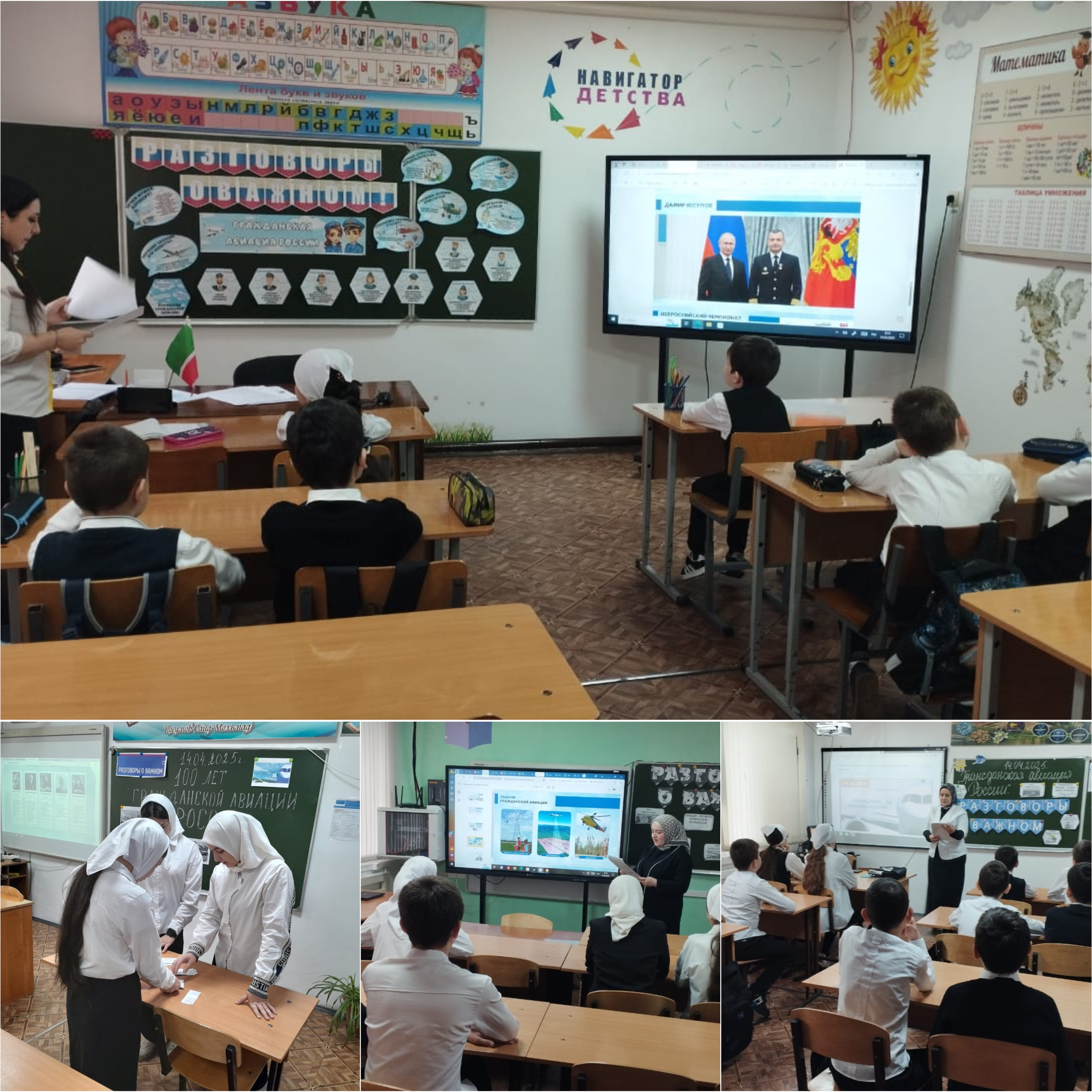 Во внеурочное занятие был включен и региональный компонент, где классный руководитель 10 класса Сулумова Напу Абдурахмановна рассказала детям о наших легендарных летчицах периода войны и современной гражданской авиации.