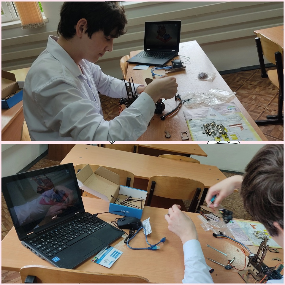 25.04.2025Абазатов Алим из 10 класса на внеурочном занятии по робототехнике «Робомир» с использованием оборудования Точки роста.