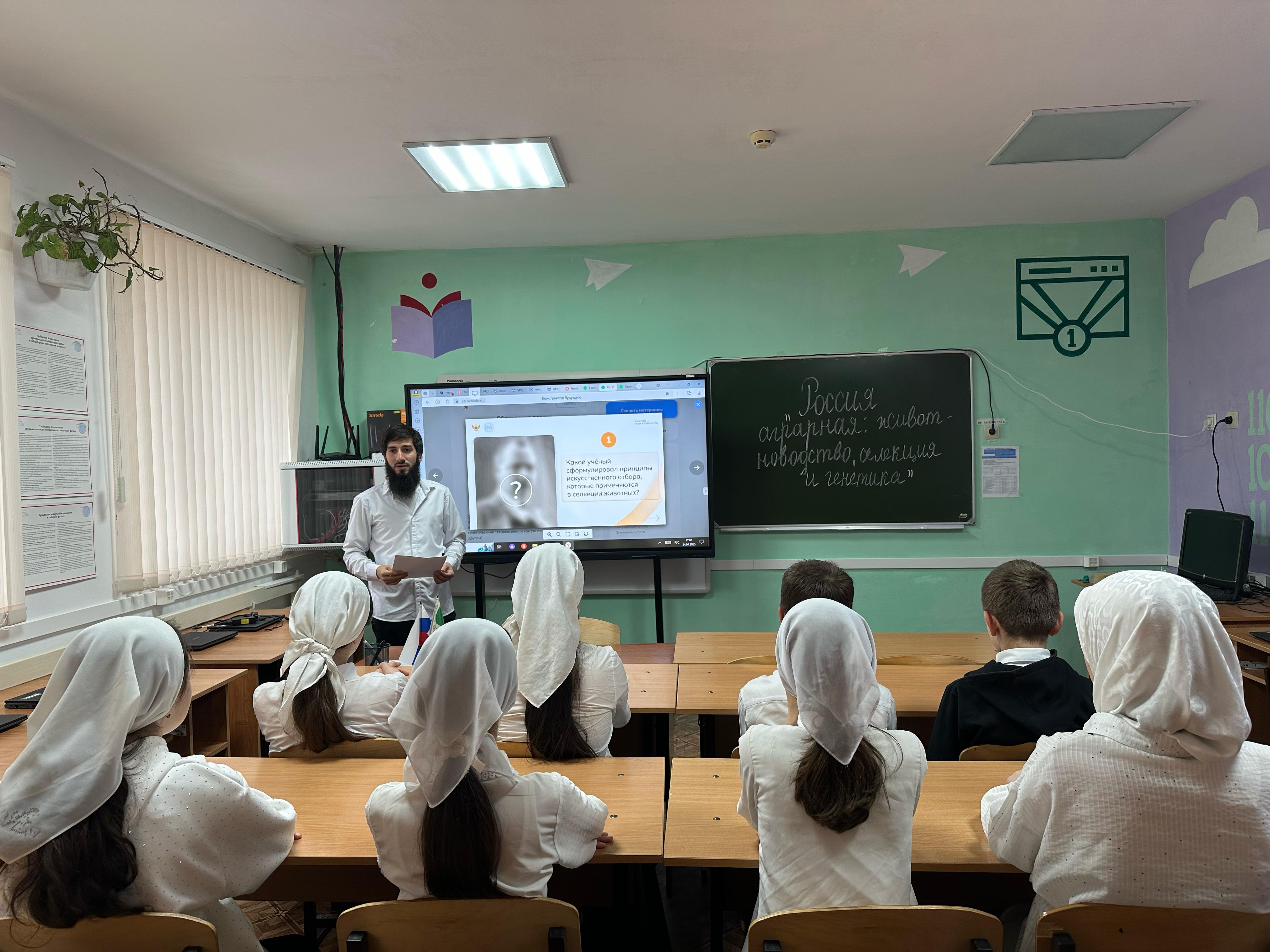 Сегодня на уроке мы рассмотрели основные аспекты темы «Россия — мои горизонты. Россия аграрная: животноводство, селекция и генетические технологии». Обсудили важность животноводства для экономики страны, основные направления селекционной работы и роль генетических технологий в повышении продуктивности сельскохозяйственных животных. Ребята активно участвовали в обсуждении, задавали вопросы и высказывали свои мысли. Такие занятия помогают глубже понять материал и развивает навыки критического мышления.