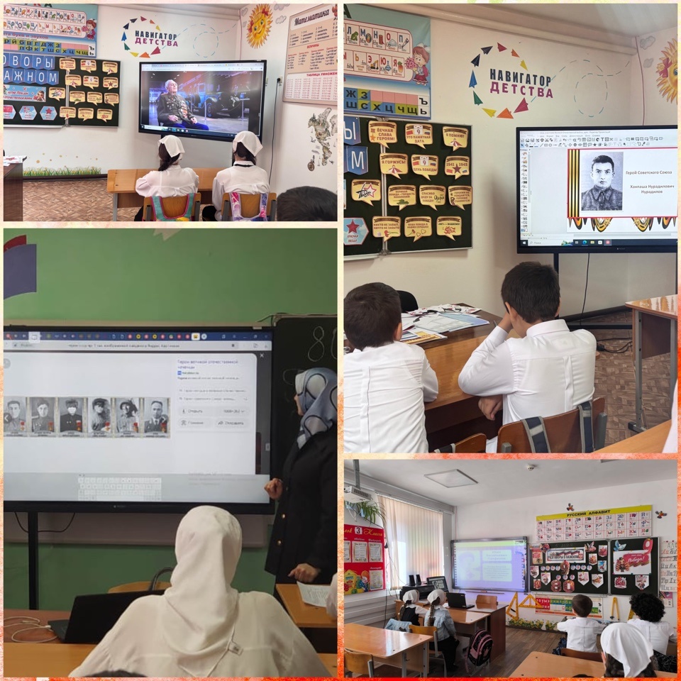 Занятие было направлено на формирование чувства патриотизма, уважения к истории своей страны и памяти о подвиге предков, а также о значимости победы для нас. Были рассмотрены самые важные даты в ходе войны. Особое внимание было уделено региональному компоненту: были приведены факты героизма наших земляков героев войны: Мовлади Висаитов, Хампаша Нурадилов и многих других. Вспомнили и односельчан, которые дошли до Польши и Берлина. Это: Абдулханов Халид и Далаев Тапа.