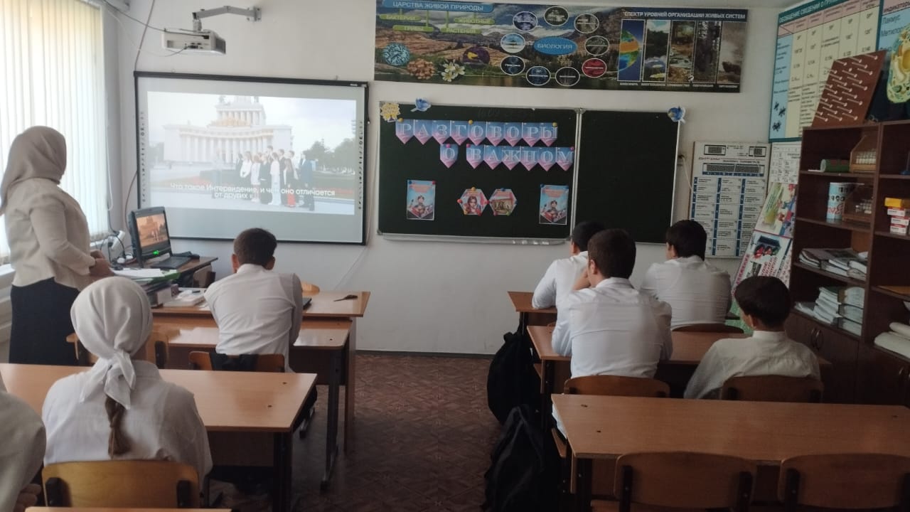 И, конечно, использовали региональный компонент. Классные руководители показали отрывки из документального фильма «Верта» и разные презентации и видео о знаменитостях и мало известных творческих людях нашей республики: о художниках, композиторах, скульпторах, мастерах по дереву и многих других. А дети посмотрели фильм о великом танцоре, о народном артисте СССР Махмуде Эсамбаеве.