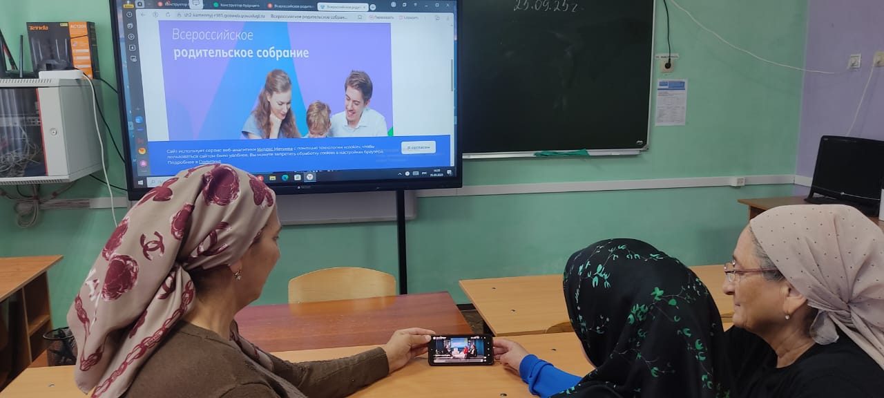 Родители, которые не смогли прийти на собрание посмотрели собрание в прямом эфире дома, а с теми, кто пришел работали классные руководители 6 – 11 класс и педагог –навигатор Сулумова Асмалика Абдурахмановна.