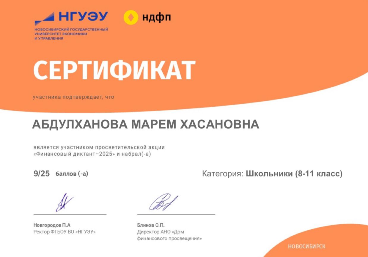 09.10.20258 октября 2025 года учащиеся 8-11 классов приняли участие в ежегодной просветительской акции «Финансовый диктант». Всего в диктанте приняли участие 23 учащихся и 4 педагога.