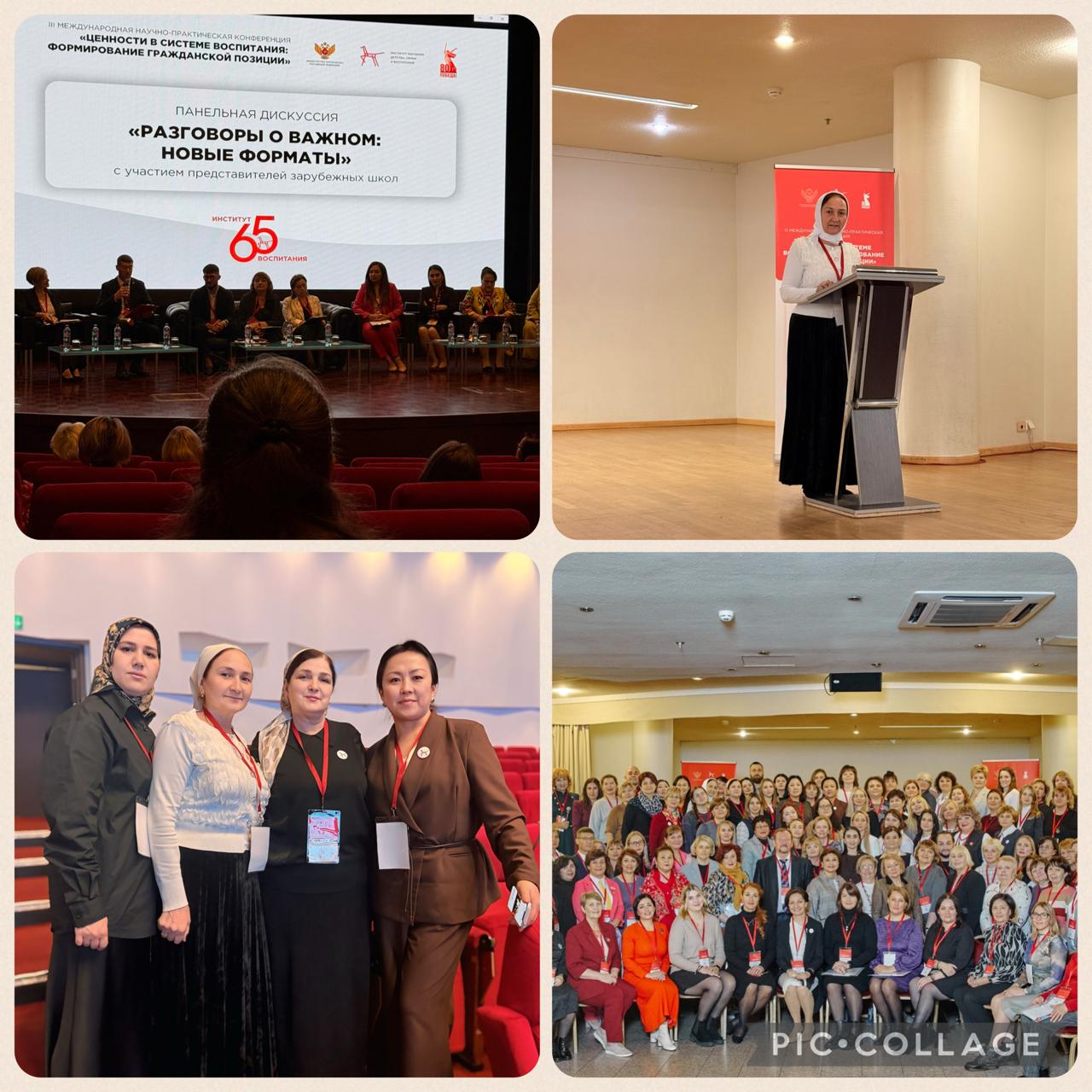 07.11.2025В Москве завершилась III Международная конференция «Ценности в системе воспитания: формирование гражданской позиции» в рамках Года защитника Отечества, организатором которой выступил Федеральное государственное бюджетное научное учреждение «Институт изучения детства, семьи и воспитания».Мероприятие также было приурочено к 65-летию Института.Цель конференции: обсуждение научных исследований в рамках аксиологического подхода и определения ценностного аспекта в вопросах воспитания, его роли и значения для формирования гражданской позиции человека.В ней приняли участие более 200 представителей из разных регионов России, а также шести стран: Республика Таджикистан, Республика Узбекистан, Кыргызская Республика, Приднестровская Молдавская Республика, Руспублика Беларусь и Объединённые Арабские Эмираты.Чеченскую Республику на Международной конференции представляли: Медаева Хава Лемиевна-заведующая центром воспитания и психолого- педагогического сопровождения образовательной деятельности ИРО ЧР;заместители директора по ВР:- Магамадова Ламара Хириевна - ГБОУ «Центр образования г.Шали».-заместители директора по ВР:Сулумова Асмалика Абдурахмановна - МБОУ «Верхатойская СОШ».Конференция стала важной площадкой для обмена опытом и выработки новых подходов к воспитанию подрастающего поколения.