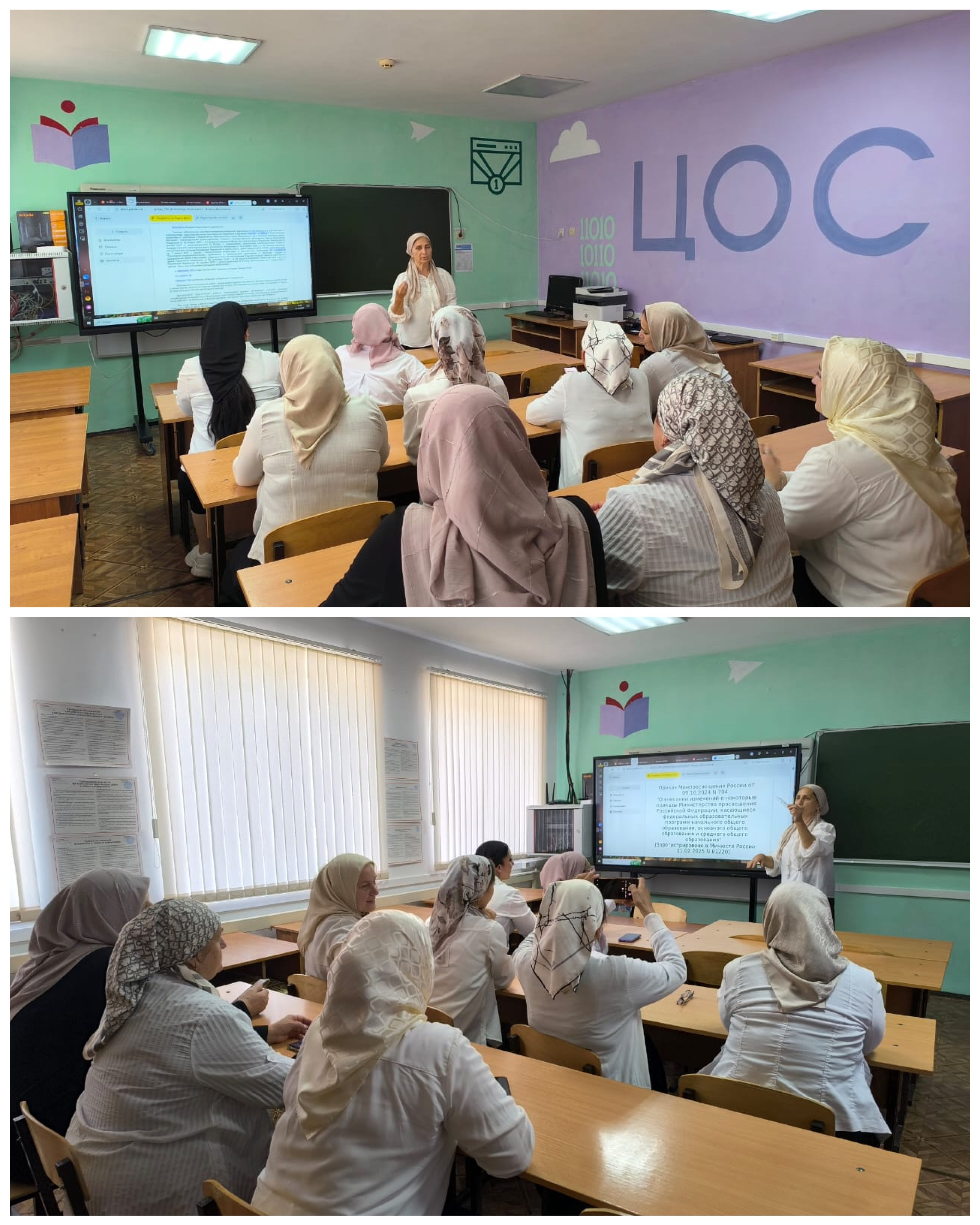 Семинар провела заместитель директора по учебной работе Даудова Р-М.Н. Она отметила, что система оценки достижения планируемых результатов освоения ООП ООО способствует поддержанию единства всей системы образования, обеспечению преемственности в системе непрерывного образования. Её основными функциями являются: ориентация образовательного процесса на достижение планируемых результатов освоения ООП ООО и обеспечение эффективной обратной связи, позволяющей осуществлять управление образовательным процессом. В рамках исполнения поручений министра образования и науки ЧР (п. 5 Протокола заседания Коллегии Минобрнауки ЧР от 25 января 2025 г № 1) , в соответствии с письмом Минобрануки ЧР от 12 сентября 2025 г. № 1749/07-43 «О направлении методических рекомендаций по обеспечению единства подходов в системе оценки достижения планируемых результатов обучающихся образовательных организаций ЧР, реализующих общеобразовательные программы», в целях обеспечения единства подходов в системе оценивания планируемых результатов обучающихся по основным общеобразовательным программам в Чеченской Республике, разработаны локальные акты:
