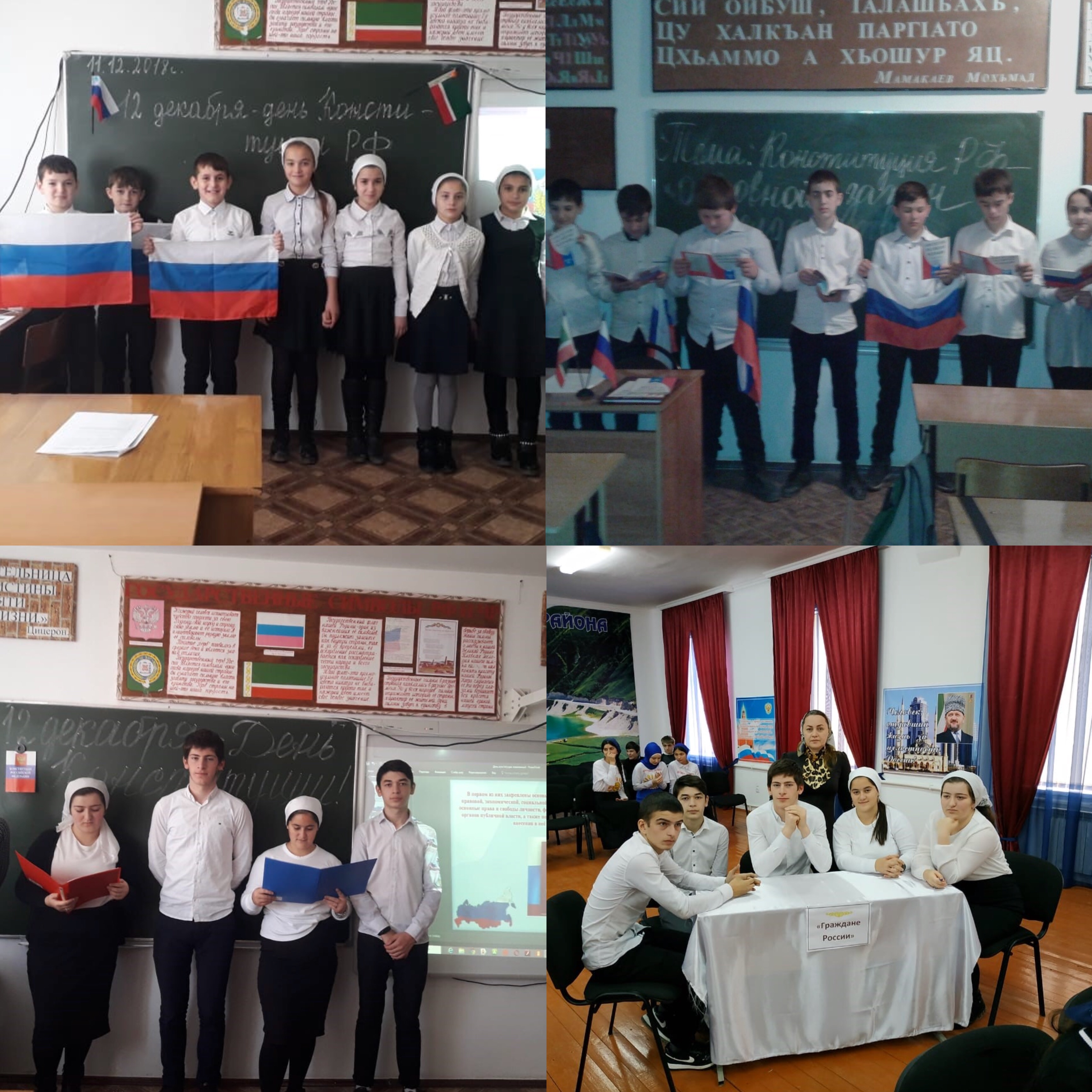 12.12.2018В целях популяризации идеи единения многонационального народа Российской Федерации через любовь к Родине, своему народу, своей истории, согласно плану работы школы 12 декабря 2018 года было проведено мероприятие, посвященное Дню Конституции. В мероприятии приняли участие обучающиеся 1-11 классов.