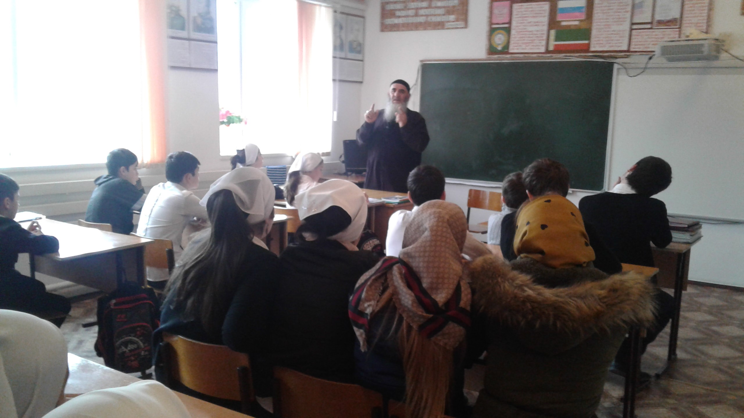 31.01.201911 января проведена встреча с учащимися на тему: "Ламаз дар, Къур1ан 1амор". На встрече присутствовали дети разных возрастов, так как молиться начинают дети с 7-ми лет, а ходить на пятничную молитву с 15-ти лет. По завершению встречи всем были розданы листовки с текстом "Вирд". 31 января проведена профилактическая беседа со старшеклассниками на тему: "1илма 1амор, харц, питане къамелах ларвалар".