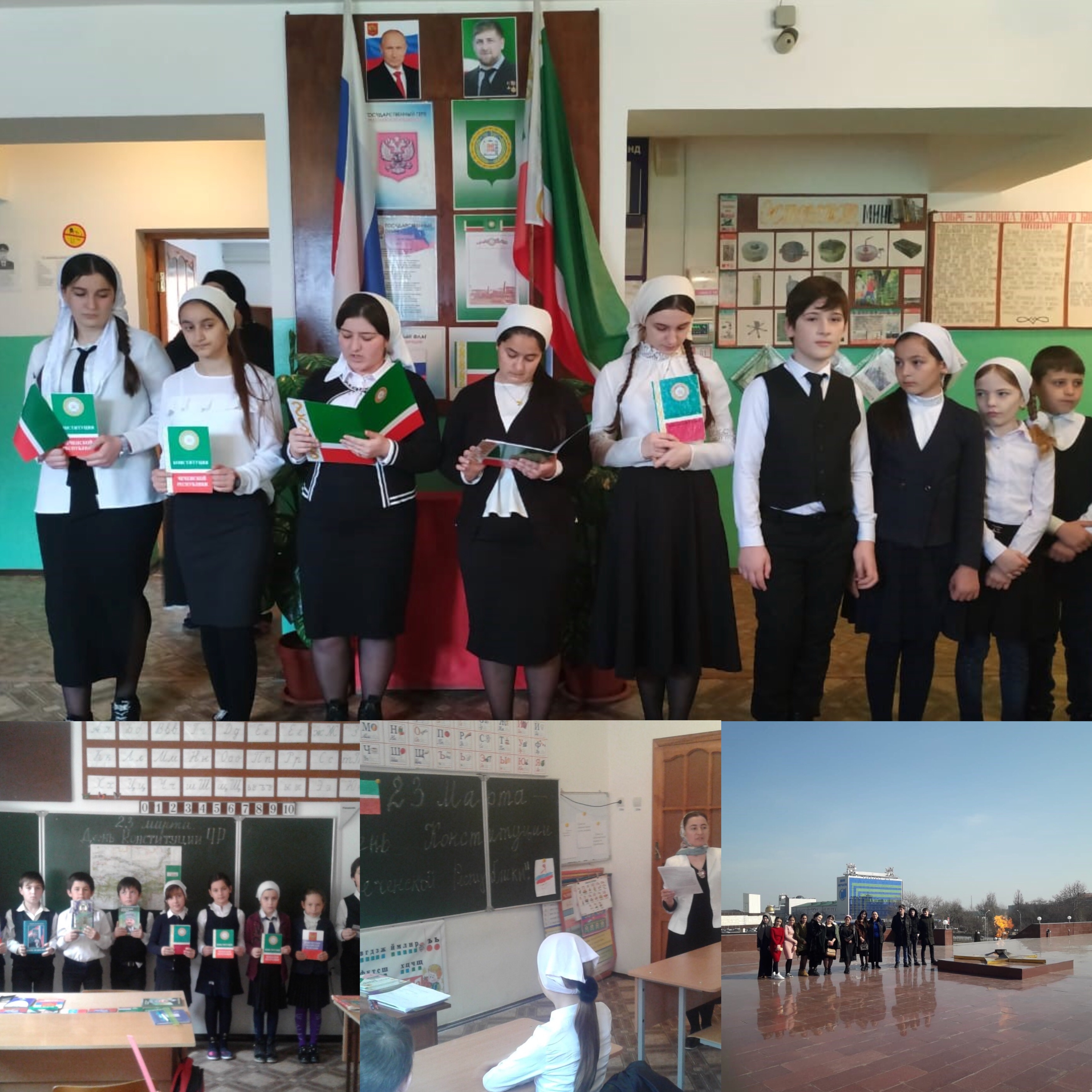 20 марта первыми уроками прошли классные часы по темам «Основной закон Чеченской Республики»», «День Конституции ЧР». В 8 классе проведен тематический урок-диспут «Основной закон Чеченской Республики», вспоминали первого президента Чеченской Республики Кадырова А-Х, его роли в проведении референдума 23 марта 2003 года и принятии Конституции Чеченской Республики. Обучающимся был показан видеоролик о том, как был проведен референдум.